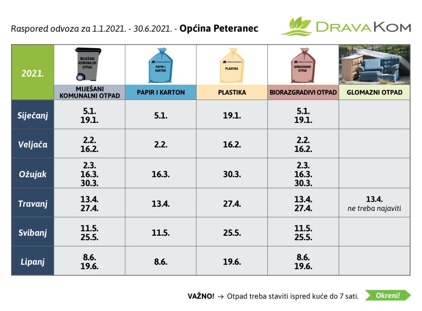 Raspored odvoza komunalnog otpada 2021